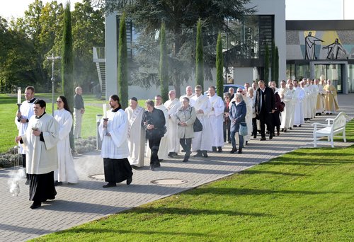 Die Diakone zogen vom Priesterseminar aus mit ihren Ehefrauen und den Zelebranten gemeinsam in die Kirche ein.