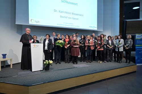 In seinem Schlusswort griff Bischof Dr. Karl-Heinz Wiesemann den Gedanken der Balance von weiblichen und männlichen Wesensmerkmalen auf. Die sich ergänzenden Eigenschaften seien in der Schöpfung angelegt. Jesus habe in seinem Handeln einen in der damaligen Zeit „anderen Typus Mann“ verkörpert, bei dem nicht die Macht im Vordergrund gestanden habe. Der Bischof bekräftigte die Aussage von Klein-Magar, dass Mut und Unterstützung zu den wesentlichen und notwendigen Faktoren im Einsatz für den Lebensschutz zählten. Er dankte seinem Vorgänger Bischof Dr. Anton Schlembach für die Gründung der Stiftung sowie den langjährigen Unterstützern, Beiratsmitgliedern, Schwangerschaftsberaterinnen und - beratern sowie allen Mitarbeitern für ihr Engagement.