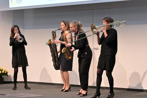 Für den musikalischen Rahmen der Feier sorgte das Bläserinnen-Ensemble „Jazzabella – Music like perfume“ aus Mannheim mit Hannah Maradei Gonzalez (Trompete), Gesa Marie Schulze (Altsaxophon), Karoline Vogt (Posaune) und Ricarda Hagemann (Baritonsaxophon). Die Moderation des Abends lag in den Händen von Uwe Burkert, Mitglied im Beirat der Stiftung und zuständig für den privaten Rundfunk im Bistum Speyer. Einen Einblick in das Engagement der Stiftung bekamen die Gäste durch drei Kurzfilme, in denen drei Projekte vorgestellt wurden.