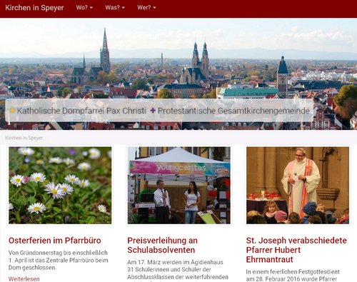 Speyer. Die ökumenische Homepage "kirchen-in-speyer.de" der Dompfarrei Pax Christi und der protestantischen Gesamtkirchengemeinde Speyer ist am 16. März in neuem Gewand online gegangen.