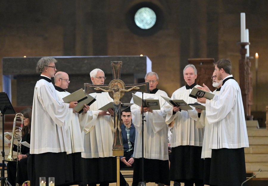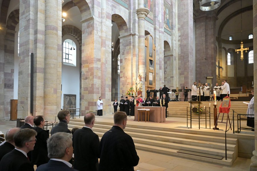 Speyer. Am Pfingstsonntag haben Bischof Dr. Karl-Heinz Wiesemann und Kirchenpräsidentin Dorothee Wüst im Speyerer Dom die Bedeutung des Heiligen Geistes für Verständigung, Glaubensmut und kirchliche Einheit betont. Gemeinsam mit Vertretern der Diözesanversammlung und der Landessynode sowie Geistlichen verschiedener Ostkirchen und der Arbeitsgemeinschaft Südwestdeutscher Mennonitengemeinden feierten sie eine ökumenische Pfingstvesper, die besonders vom Geist der Geschwisterlichkeit geprägt war. Die musikalische Gestaltung übernahmen die „Schola Cantorum Saliensis“ unter Leitung von Domkantor Joachim Weller, die Schola der rumänisch-orthodoxen Gemeinde Ludwigshafen, ein Blechbläserensemble der Pfälzischen Landeskirche unter der Leitung von Landesposaunenwart Matthias Fitting sowie Frederic Beaupoil, Assistent der Dommusik, an der Orgel.