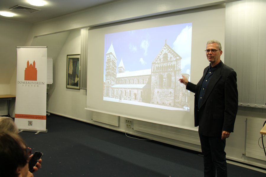 Speyer. Der große Speyerer Dom hat eine kleine Schwester: die Domkirche in Lund (Schweden) ähnelt in Teilen dem Speyerer Dom so auffällig, dass hier von einer Nachfolge gesprochen werden kann. In seinem Vortrag im Rahmen des Wissenschaftlichen Forums des Speyerer Dombauvereins nahm Professor Dr. Christofer Herrmann, der an der Universität von Danzig lehrt, ---- eine interessierte Zuhörerschaft mit auf einen „virtuellen Rundgang“ durch die skandinavische Kathedrale und verdeutlichte eindrucksvoll die Gemeinsamkeiten, aber auch die Unterschiede ---- zwischen den Domen in Speyer und Lund. Die gut besuchte Veranstaltung fand traditionsgemäß im Vortragssaal der Volksbank Kur- und Rheinpfalz Speyer statt.