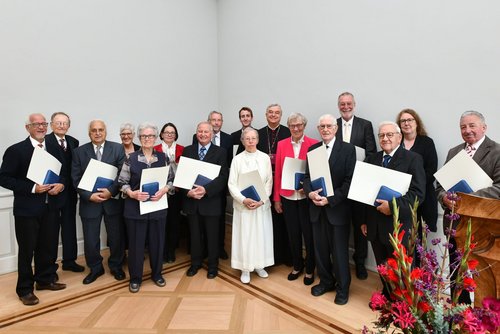 Die Geehrten wurden von den Dekanatsräten sowie von Bischof Wiesemann für die Auszeichnung vorgeschlagen. Die neuen Träger der Pirminius-Plakette sind: