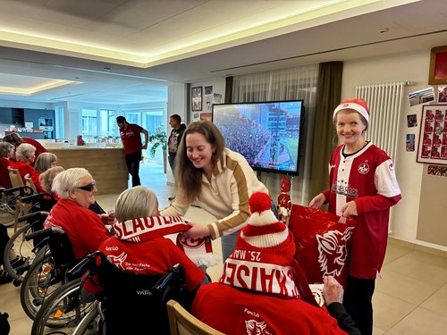 Landstuhl. Im Landstuhler Caritas-Altenzentrum St. Nikolaus ist wahrlich der Teufel los – genauer gesagt der Rote Teufel. Die Heimbewohner sind vernarrt in die Kicker des 1. FC Kaiserslautern. Heimleiter Thomas Matz hat dieser Tage die Westkurve ins Heim mitgebracht. Und vom FCK gab es Geschenke.