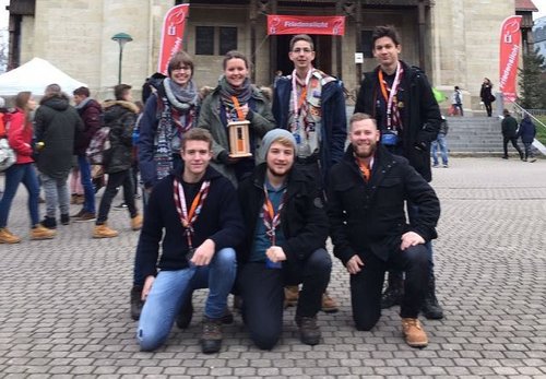 Pfadfinder verteilen das Friedenslicht aus Bethlehem
