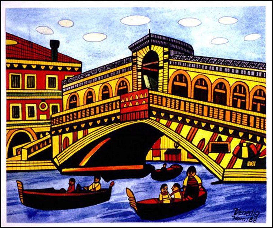 Wie Alzheimer sich auf das Schaffen des Künstlers auswirkte, wird in diesem Bild deutlich, das naiv und farbenfroh erscheint.