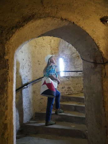 Wie am Tag des offenen Denkmals üblich, wurde mit dem Nord-Ost-Turm in diesem Jahr ein Bereich geöffnet, der ansonsten für Besucher nicht zugänglich ist. Dombaumeisterin Hedwig Drabik und Restaurator Roger Thamm informierten im halbstündlichen Rhythmus über Schäden und die geplanten Restaurierungsmaßnahmen. Mit einem Bauhelm ausgestattet folgte dann jeweils gruppenweise die gemeinsame Besteigung des aus dem 11. Jahrhundert stammenden Turms bis zum ersten offenen Turmgeschoss.