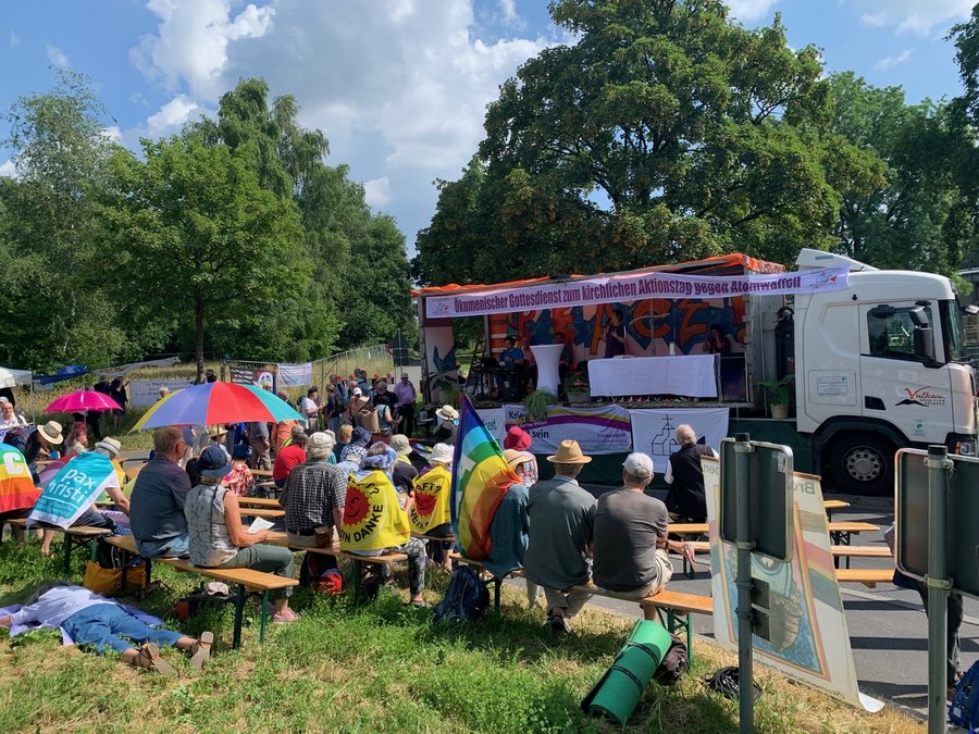 Der Kirchliche Aktionstag beginnt um 11 Uhr mit Musik und der Vorstellung von Überlebenden der Atombombenabwürfe in Japan und jüngeren Menschen, die sich gegen Atomwaffen, engagieren. Mit dem Läuten der Glocke auf der Friedenswiese um 11.55 Uhr wird der Gottesdienst vor dem Haupttor beginnen. Mitwirkende sind neben der Kirchenpräsidentin und dem Weihbischof auch Diakon Horst-Peter Rauguth von pax christi sowie Gregor Rehm von der Arbeitsstelle Frieden und Umwelt der Evangelischen Kirche der Pfalz.