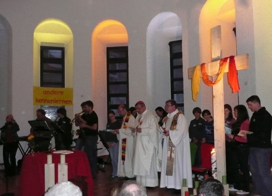 Eröffnung von LUMEN 2008: Pfr. Stefan Mühl (damaliger BDKJ-Präses und Diözesanjugendseelsorger), Bischof Dr. Karl-Heinz Wiesemann und Pfr. Alban Meißner (Pfarrer von Herz Jesu) [v.l.n.r]