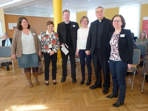 Christine Lormes, Gisela Rink, Domkapitular Franz Vogelgesang, Barbara Aßmann, Bischof Dr. Karl-Heinz Wiesemann und Rita Höfer (v.l.n.r.)