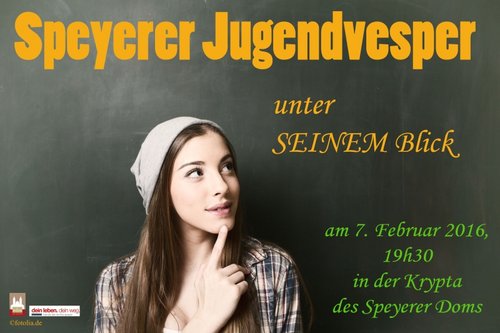 Speyer. „Unter SEINEM Blick“ – unter diesem Titel steht die nächste Jugendvesper am Sonntag, 7. Februar, 19.30 Uhr in der Krypta des Speyerer Doms. Pastoralreferentin Sandra Petrollo-Shahtout wird sich in ihrer Ansprache mit der Frage beschäftigen, welcher Blick – der eigene oder der von anderen – für einen Menschen wichtig ist und wie es möglich ist, sich unter "SEINEN Blick" zu stellen.