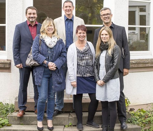 Die erfolgreichen Absolventen der Weiterbildung mit Thomas Stephan, Referent für Schulpastoral (links) und Schulrat i.K. Thomas Mann (rechts).