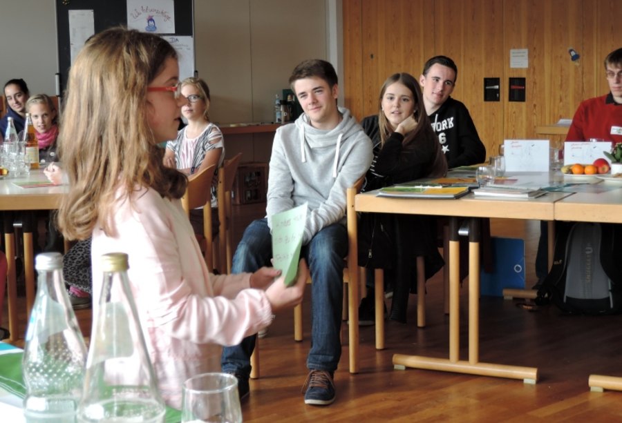 Der Vormittag war geprägt von einem Studienteil zum Thema „Kindermitbestimmung – Wahlrecht ohne Altersgrenze“. Marc Eickelkamp, Bundesleiter der KjG, gab in einer kurzen Einführung einen Überblick darüber, wie die aktuelle politische Lage ist, was Juristen und Soziologen zu dem Thema sagen und wie die KjG auf Bundesebene zu dem Thema steht. Im Anschluss daran hatten die Delegierten die Möglichkeit, im Rahmen einer Gerichtsverhandlung, ihre Meinung vorzustellen und zu vertreten.
