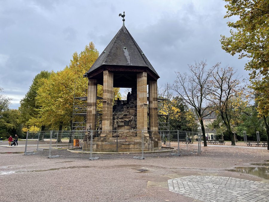Das Projekt startete bereits im Jahr 2024 mit ersten Vorarbeiten. So wurde mit Unterstützung der Dr. Albrecht-und-Hedwig-Würz-Stiftung das Gitter mit Sandsteinsockel um den Ölberg restauriert und so verändert, dass es für die weiteren Restaurierungsarbeiten modular rückbaubar ist. Anfang des Jahres 2025 wurde dann ein Gerüst gestellt, um die Schäden am Ölberg und dessen Figuren genauer in Augenschein nehmen zu können und erste Probereinigungen durchzuführen. Für die weiteren Maßnahmen ist dieses jedoch von der Konstruktion her ungeeignet. Zudem kann in der kalten Jahreszeit nicht weitergearbeitet werden, weshalb dieses Gerüst nun abgebaut wird.