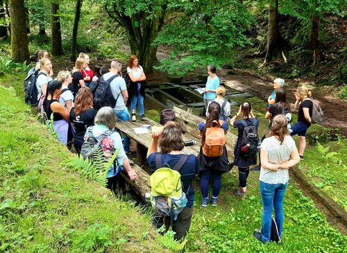 Esthal. Unter dem Leitgedanken „Auf dem Weg für Gerechtigkeit“ trafen sich auf Einladung der Abteilung Religionsunterricht am Samstag, 10. Juli und Sonntag, 11. Juli, jetzt schon im zweiten Jahr, jeweils 24 Teilnehmer/innen im Kloster Esthal um gemeinsam auf dem Brunnenweg über Bildungsgerechtigkeit, Impfgerechtigkeit und Klimagerechtigkeit nachzudenken.
