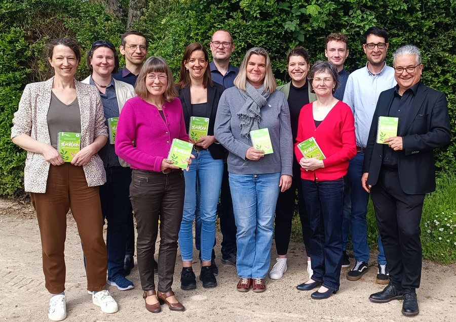 Das Buch ist ein Teamprojekt. Die Autor*innen sind (von links) Christine Stuck, Cathrin Rieger, Matthias Rugel SJ, Ulrike Gentner, Jana Sand, Kai Stenull, Kerstin Hofmann, Verena Urban, Birgit Meid-Kappner, Max Berger, Alexander Mack, Tobias Zimmermann und die Jesuiten (nicht im Bild) Klaus Mertes, Mathias Werfeli und Johann Spermann.