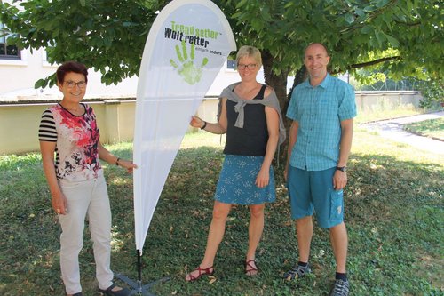 Bärbel Schäfer, Umweltbeauftragte der Evangelischen Kirche der Pfalz, Sibylle Wiesemann, Klimaschutzmanagerin der Evangelischen Kirche der Pfalz und Steffen Glombitza, Umweltbeauftragter des Bistums Speyer gehören zu den Organisatoren der Aktion "Trendsetter Weltretter - einfach anders konsumieren" (v.l.n.r.)