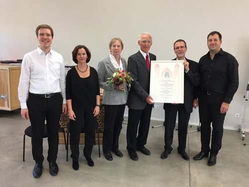 Im Anschluss an das Pontifikalamt zum Domweihfest wurde Steinmetz in einer kleinen Feierstunde im Haus der Kirchenmusik die Ehrenmitgliedschaft verliehen. „Wir danken Alfred Steinmetz für sein außerordentliches Wirken. Er ist ein Vorbild für uns alle“, so Liebscher-Kuhn in ihrer Laudatio. Auch Domdekan Christoph Kohl würdigte die Verdienste des langjährigen Chormitgliedes verbunden mit dem Wunsch, den Geehrten noch lange bei den von der Dommusik gestalteten Gottesdiensten oder Konzerten begrüßen zu können. Alfred Steinmetz erhielt neben einem Buchpräsent eine von Weihbischof und Dompropst Otto Georgens unterzeichnete Ehrenurkunde.