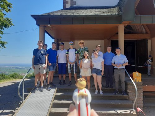 Burrweiler. Am 19. Juli fand die diesjährige Ministrantenwallfahrt auf den Annaberg in Burrweiler zum ersten Mal mit Messdienerinnen und Messdienern aus dem ganzen Bistum statt. Fast 100 Messdienerinnen und Messdiener aller Altersgruppen mit zahlreichen Betreuungspersonen kamen nach Burrweiler, um den halbstündigen Weg nach oben anzutreten. Um 9 Uhr trafen sich die Messdienerinnen und Messdiener an der Pfarrkirche Mariā Heimsuchung in Burrweiler mit Elisabeth Bauer und Jana Schiegl, die gerade ein Praktikum in der Berufungspastoral Speyer bei Kaplan Matthias Schmitt absolviert. Sie ist selbst Messdienerin auf Maria Rosenberg und unterstütze sowohl bei den Vorbereitungen als auch an diesem Tag vor Ort. Mit dabei war auch der Heilige Tarzisius, der in Form einer kleinen Figur seit Neuestem das Gesicht des Instagram-Accounts ist.