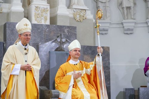 Dr. Franz Jung im Kiliansdom zum Bischof geweiht und als 89. Bischof von Würzburg eingeführt – Metropolit Erzbischof Schick: „Hirten müssen die Herde kennen so gut es geht“ – Mehr als 2000 Gläubige feiern im Dom, Neumünster und auf dem Kiliansplatz mit – Bayerisches Fernsehen überträgt Gottesdienst