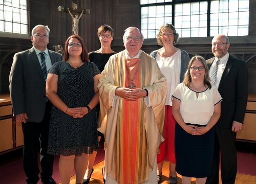 In seiner Predigt dankte Weihbischof Georgens nicht nur den beiden Gemeindereferentinnen, die nun nach jahrelanger Ausbildung in den Dienst des Bistums treten. Er dankte auch den Ausbilderinnen und Ausbildern, Familie, Freundinnen und Freunden und allen, welche die Referentinnen auf ihrem Weg unterstützt haben, denn es sei nicht einfach in diesen Zeiten „ja zu sagen zum Dienst in der Kirche, deren Glaubwürdigkeit tief erschüttert ist.“