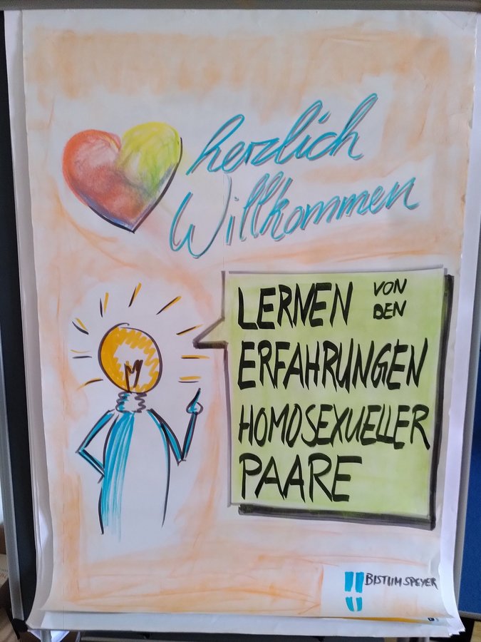 Zum Abschluss des Abends ging es um die Frage, wie auf Grundlage des Gehörten konkrete Handlungsoptionen aussehen könnten. Die gesammelten Ideen reichten von dem Aufhängen von Regenbogenfahnen als sichtbare Zeichen des Willkommenseins bis hin zur Aufnahme queersensibler Angebote in die pastoralen Konzepte der einzelnen Pfarreien. Alle Anwesenden waren sich einig, dass es noch viel zu tun gebe und weitere Fortbildungen im Sinne der Sensibilisierung für die Bedürfnisse und Wünsche homosexueller Menschen im Raum der Kirche unbedingt notwendig seien.