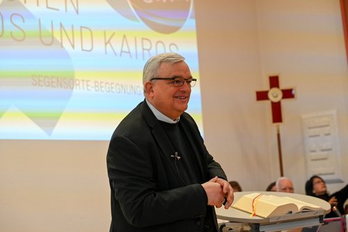Im Anfang der Bistums-Vision heißt es: „Berührt und bewegt von der Menschenfreundlichkeit Gottes wollen wir Segensort in der Welt sein.“ Bischof Wiesemann: „Segensort, also Berührungsort, für die Menschen. Nicht Machtort, wo wir sagen, wie es geht, sondern Berührungsort, für die Menschenfreundlichkeit Gottes. Da steht ganz bewusst ‚Segensort in der Welt‘, nicht in unseren kleinen Kreisen. Schon allein dieser erste Satz bewegt mich persönlich. Er zeigt auch, wie unser politischer und gesellschaftlicher Auftrag heute sein kann und er kann uns eine innere Kraft geben, nicht nur zu fragen, was erledigt werden muss, sondern auch, was jemanden berührt und bewegt.“