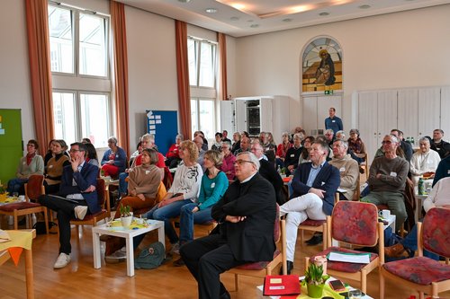 Passend dazu eröffnete Speyers Bischof Dr. Karl-Heinz Wiesemann den Tag mit einem Impuls, den er der Bistums-Vision und dem Thema Vision im Allgemeinen widmete. „Vision, das ist nicht irgendetwas für Nachtschläfer, das ist für hellwache Menschen“, so der Bischof. „Sie ist etwas für diejenigen, die die Möglichkeiten, die in der Wirklichkeit stecken, schon jetzt mit hellwachen Augen sehen.“ Eine Vision brauche etwas, das einen selbst im Inneren berührt. Auch für ihn sei es ein langer Weg, eine Lebensreise, gewesen, von den theoretischen Überlegungen des Studiums hin zu dem, was berührend und beweglich ist.
