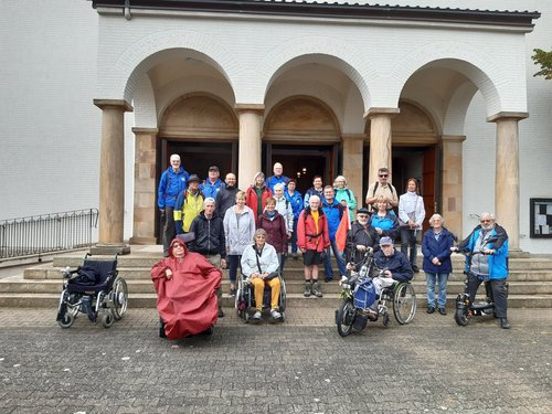 Limburgerhof/Schifferstadt. Zum zweiten Mal nach 2021 trafen sich knapp dreißig Menschen mit und ohne Handicap zu „Pilgern für alle“. Inspiriert vom ersten barrierefreien Pilgerweg von Worms nach Frankreich sollte auch an diesem Samstag ein Teilabschnitt von etwa 7 km gegangen oder gerollt werden. Dieses Jahr haben gleich drei Kooperationspartner den Pilgertag geplant: Die Seelsorge für Menschen mit Behinderung, der DJK-Sportverband sowie die MS-Gruppe Schifferstadt. Außerdem hatten sich Pastoralreferentin Doris Heiner und Pastoralreferent Heiner Schmith Zeit genommen, um der Pilgergruppe die Kirchen in Limburgerhof und Schifferstadt näher zu bringen.