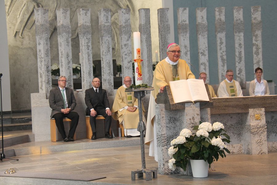 Als Regens begrüßte der Bischof Domkapitular Franz Vogelgesang, Jahrgang 1962, „einen Seelsorger mit Leib und Seele, der ja immer zurück in die Pfarrseelsorge wollte – aber genau einen solchen Menschen braucht es in der Ausbildung unserer Seelsorgerinnen und Seelsorger“, bekräftigte Wiesemann. Vogelgesang zeichne sich durch eine tiefe geistliche Verwurzelung aus, sei ein guter Prediger, ein Teamworker und ein Geistlicher, der offen sei, für neue missionarische Wege. „Ich bin dankbar, dass wir heute zwei Personen als Leitung einführen, die beide für das Evangelium brennen“, so der Bischof abschließend.