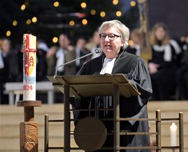 Kirchenpräsidentin Wüst nahm die Gläubigen gedanklich mit: „Ich sitze neben Thomas und spüre die Dunkelheit. Spüre die Brüchigkeit von Hoffnung, die Zerbrechlichkeit von Zukunft, die Verletzlichkeit von Leben.“ Doch wenn es schwerfällt, helfe Gott auf die Sprünge, so Wüst. „Weil er das Kreuz nur deshalb getragen hat, damit wir etwas lernen über die Unerträglichkeit von Kreuzen. Aber eben auch über das Geheimnis der Auferstehung, das uns auferstehen lässt. Aufstehen lässt. Gegen die Kreuze. Und für das Leben.“