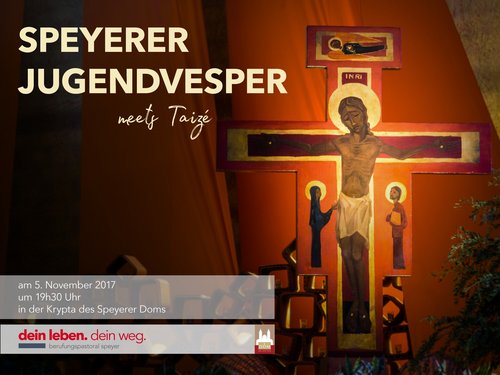 Speyer. Die Stelle „Berufungspastoral Speyer“ im Bistum Speyer lädt zur nächsten Jugendvesper in der Krypta des Speyerer Domes am Sonntag, den 5. November, um 19.30 Uhr ein. Unter dem Motto "Jugendvesper ...meets Taizé!" wird an die Erlebnisse einer Gruppe von knapp 50 Jugendlichen aus dem Bistum Speyer, die in den Herbstferien in Taizé waren, angeknüpft. Der Vesper steht Diözesanjugendseelsorger Carsten Leinhäuser vor. Als erfahrener Taizépilger wird er auch die Predigt halten.