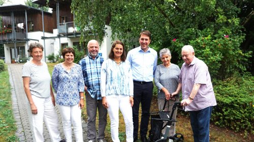Der Leiter des Caritas-Altenzentrums Paul Lösch (3.v.l.) und das Mitglied des Bun-destages Markus Tressel (3.v.r.) sind sich einig, dass der Beruf der AltenpflegerIn-nen eine gesellschaftliche Aufwertung braucht.