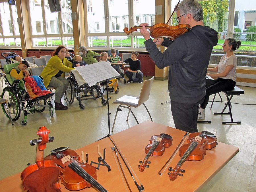 Landau. Mozarts „kleine Nachtmusik“ war der Auftakt. Das von Heike Schumacher am E-Piano begleitete Geigenspiel von Frieder Funk ergriff die junge Hörerschaft im „Klingenden Klassenzimmer“ der Deutschen Staatsphilharmonie Rheinland-Pfalz, das in der vergangenen Woche an drei Tagen Station in der Schule mit dem Förderschwerpunkt motorische Entwicklung am Landauer Caritas-Förderzentrum St. Laurentius und Paulus machte. Ganz deutlich zeigten das jedenfalls der siebenjährige Max und sein Mitschüler Martell, die die Klänge sichtlich angerührt genossen.