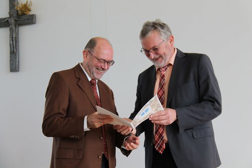 Die kirchenrechtliche Expertise von Huber sei bei den Pfarrgremienwahlen ebenso gefragt und geschätzt gewesen wie an vielen anderen Stellen, so bei seiner Arbeit als Mitglied des Vermögensausschusses, als Ehebandverteidiger, Geschäftsführer der MAVO-Einigungsstelle und des KODA-Vermittlungsausschusses, als Mitglied im Stiftungsrat der Heinrich-Kimmle-Stiftung oder als Dozent am Priesterseminar. „In vielen Arbeitsgruppen hast Du durch Deine konstruktive Mitarbeit vieles bewegt und auch modernisiert“, würdigte Jochim das Engagement Hubers. „Immer wieder hast Du auch versucht, eingefahrene Abläufe und Formulare den neuen technischen Möglichkeiten und inzwischen zur Verfügung stehenden Computerprogrammen anzupassen. Vor allem die Pfarrsekretärinnen und Pfarrsekretäre sind Dir dafür, aber auch für Deine kompetente Beratung bei vielen ihrer Fragen, die vielen Fortbildungsveranstaltungen und die Aktualisierung und Digitalisierung des ‚Handbuchs für das Pfarrbüro‘ sehr dankbar.“