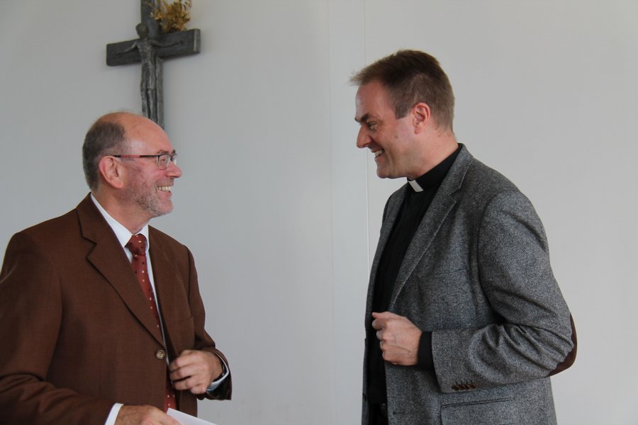 Mit welchen konkreten Aufgaben Christian Huber im Laufe seiner Tätigkeit für das Bistum zu tun hatte, beschrieb Wolfgang Jochim, Kanzleidirektor und Leiter der Hauptabteilung Zentrale Dienste, in seiner Ansprache. Ob die mit „Gemeindepastoral 2015“ verbundenen Strukturreformen oder das Erproben neuer Leitungsmodelle für Pfarreien „alle diese Veränderungen mussten und müssen natürlich kirchenrechtlich begleitet werden“, so Jochim. Viele bischöfliche Gesetze, Verordnungen und Dekrete stammten „aus der Feder“ Hubers. „Du bist jedoch nicht nur derjenige gewesen, der Gesetze und Verordnungen mit entwickelt hat, sondern bist nicht selten um Rat gebeten worden, wie diese ausgelegt und gelebt werden sollten.“
