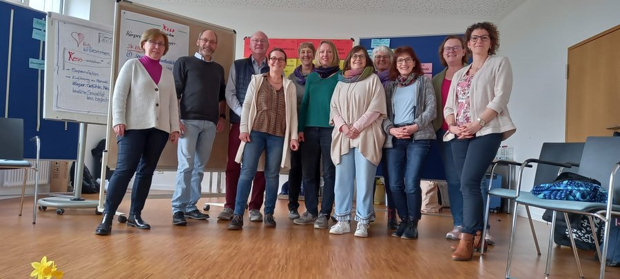 Erstmals wurden acht kess-erziehen Kursleiterinnen und Kursleiter für das Bistum Speyer, aber auch für weitere Bistümer im neuen Kursmodul von kess-erziehen „Körper. Gefühle. Neugier. Kindliche Sexualität kess begleiten“ geschult. Das neu vorliegende Kursmodul möchte dazu beitragen, dass Sexualität positiv besetzt wird und als eine Grunddimension menschlichen Lebens gesehen, als Lebensenergie geschätzt und als „zwischenmenschliche Sprache“ (Papst Franziskus) gestaltet wird. Darüber hinaus will das Kursmodul einen Beitrag leisten, dass Sexualerziehung als ein zentraler Teil, auch christlicher Erziehung, wahrgenommen wird, durch die Kinder und Jugendliche darin begleitet werden, sich im und mit dem eigenen Körper wohlzufühlen.