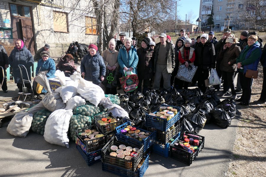 Besonders im Osten der Ukraine sehen die Herz-Jesu-Priester weiterhin viel Handlungsbedarf. Die alten und verarmten Menschen trafen sie vor allem in Izjum und Charkiw. Die jungen Leute nahe der russischen Grenze sind weggezogen, weggegangen, geflüchtet. Bei den Alten ist die Not auch deshalb so groß, weil sie nur 60 bis 80 Euro pro Monat an Rente bekommen. Die Lebensmittel, die man in den noch vorhandenen Läden kaufen kann, sind aber fast genauso teuer wie bei uns. Von daher waren die Menschen sehr froh über die Lebensmittelpakete, die P. Hemken und P. Chmieleck zusammen mit Ehrenamtlichen verteilten.