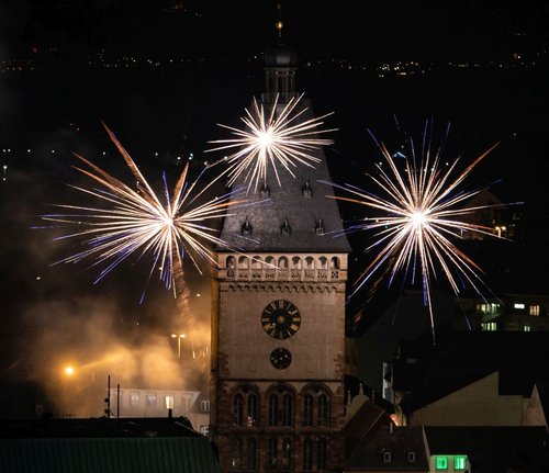 Speyer. Der Südwestturm des Speyerer Doms, während der Wintermonate normalerweise für Besucher geschlossen, ist am 3. und 18. Dezember abends während des Feuerwerks „Altpörtel in Flammen“ geöffnet. Aus 60 Metern Höhe, weit über den Menschenmassen auf der Maximilianstraße, stellen sich der Sternenregen und das Feuerspektakel rund um den mittelalterlichen Stadtturm besonders eindrucksvoll dar.