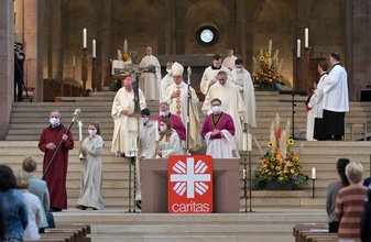 Der Präsident des Deutschen Caritasverbandes Peter Neher würdigte in seiner Predigt den Dienst der Caritas an der Seite kranker, alter und pflegebedürftiger Menschen besonders in der Corona-Pandemie: „Das war und ist erlebbare Kirche und ein starkes Zeugnis des Glaubens.“ Mit Bezug auf die aktuelle Caritas-Kampagne „Sei gut, Mensch!“ warb er dafür, selbst aktiv zu werden und sich politisch zu Wort zu melden. Die Gesellschaft sei angewiesen auf Menschen, die Verantwortung übernehmen. Die Corona-Pandemie habe viele Maßstäbe in Frage gestellt. Mehr denn je werde das persönliche Engagement gebraucht, verbunden mit der „göttlichen Perspektive, die darauf drängt, dass der Mensch im Mittelpunkt steht und gleichzeitig über sich hinausweist.“ Neher wehrte sich gegen die diffamierende Etikettierung von Engagierten als „Gutmenschen“ und unterstrich im Blick auf die Aufnahme von Flüchtlingen: „Ohne die vielen guten Menschen hätten wir es nicht geschafft, dass eine große Zahl derer, die nach ihrer Flucht in unser Land gekommen sind, heute Arbeit und Heimat gefunden haben. Da bleibt noch vieles zu tun, aber lassen wir uns das Erreichte nicht schlecht reden.“