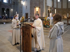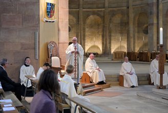 Musikalisch wurde der Festgottesdienst von dem Vokalensemble des Domchores Speyer unter Leitung von Domkapellmeister Markus Melchiori und Domorganist Markus Eichenlaub gestaltet. Zur Aufführung kam die Missa festiva für vierstimmigen Chor und Orgel des britischen Komponisten Christopher Tambling.