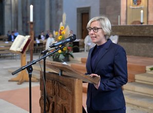 Für die Regierung des Saarlandes würdigte Monika Bachmann, Ministerin für Soziales, Gesundheit, Frauen und Familie, die Arbeit des Speyerer Diözesan-Caritasverbandes: „100 Jahre Caritasverband bedeutet: 100 Jahre Dienst am Menschen und 100 Jahre stetiger Entwicklung in einer Zeit voller Umbrüche.“ Die Caritas habe diese Zeit nicht nur durchlebt, sondern sozialpolitisch aktiv und verlässlich mitgestaltet. „Indem die Caritas immer wieder die Zeichen der Zeit erkannt hat und bereit war, Neuland zu betreten, ist sie mit und an ihren Aufgaben gewachsen.“ Caritas sei für sie „ein Weg zu mehr Gerechtigkeit, Teilhabe, Friede und Toleranz.“