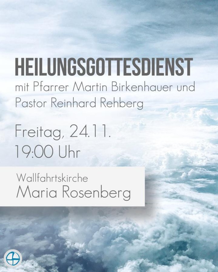 Waldfischbach-Burgalben. Am Freitag, den 24. November, wird um 19:00 Uhr in der Wallfahrtskirche Maria Rosenberg wieder ein Heilungsgottesdienst gefeiert. Er wird diesmal von Christen verschiedener Gemeinschaften gestaltet: Der katholische Priester Martin Birkenhauer aus Saarbrücken und Pastor Rüdiger Rehberg von der Vineyard- Gemeinde in Speyer leiten gemeinsam den Gottesdienst. Dominique Haas und ihr Team gestalten den Lobpreis. Alle, die es wünschen, können im Rahmen der Feier für sich beten lassen.