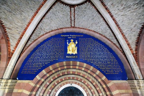 Weiteres Foto: Nachbildung der Privilegieninschrift über dem Hauptportal des Doms anlässlich des Salierjahres 2011 © Domkapitel Speyer, Klaus Landry