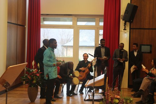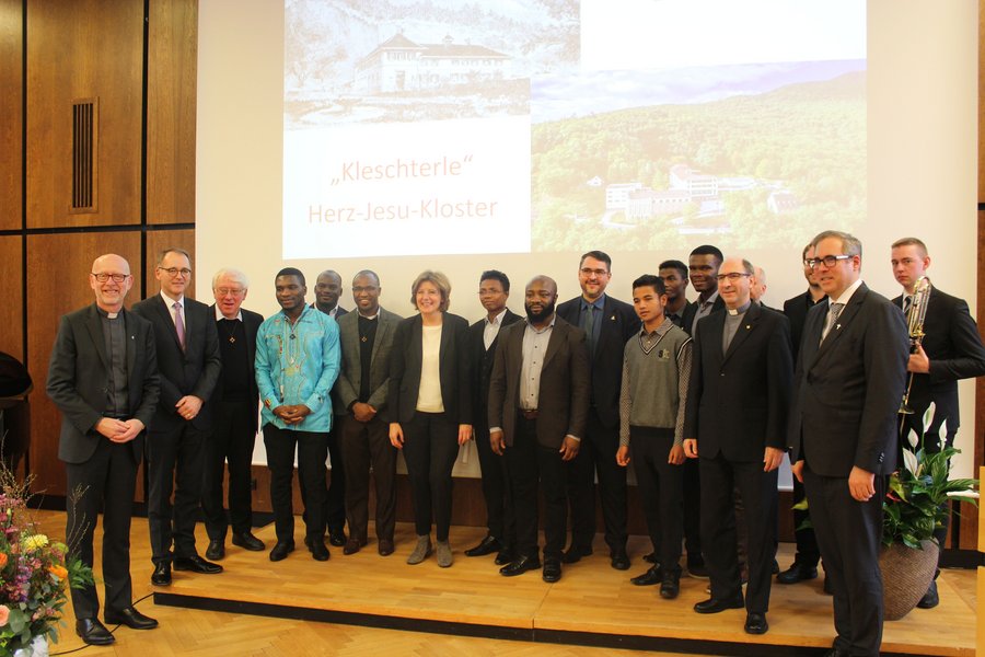 Durch den Festakt führte Moderator Uwe Burkert, der Senderbeauftragte für den privaten Rundfunk im Bistum Speyer. Humorvoll und kenntnisreich kündigte er die Festredner an und fasste das Gesagte zusammen. Für den musikalischen Rahmen sorgten Theologiestundeten aus dem Freiburger Herz-Jesu-Kloster. Den Anfang und Schluss gestalteten die jungen Männer aus Kamerun, Madagaskar und Finnland mit einem Gloria aus West-Kamerun und einem traditionellen Stück aus Süd-Afrika. Zwischen den Redebeiträgen spielten Frater Martti Savijoki SCJ, am Klavier und Liam O´Mahony mit der Posaune klassische Musikstücke. Der Erste ist Theologiestudent aus Finnland und Profimusiker, O´Mahony stammt aus Neustadt und studiert an der Uni Mannheim Musik.