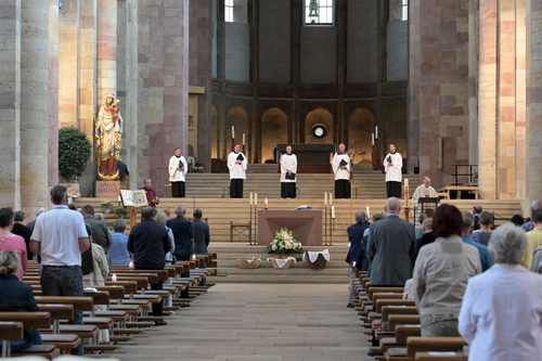 „Darum“, so erinnerte der Vorsitzende der Saliergesellschaft Alfred Schießler bei seiner Begrüßung zu Beginn des Gottesdienstes, „ist dies eigentlich ein Fest der Bürger Speyers“. So wohnten denn auch Oberbürgermeisterin Stefanie Seiler, Bürgermeisterin Monika Kabs und die hauptamtlich Beigeordnete Irmgard Münch-Weinmann dem Gottesdienst bei, der in diesem Jahr zum ersten Mal von Domkapitular em. Dr. Norbert Weis zelebriert wurde. Musikalisch gestaltet wurde er von einem fünfköpfigen Ensemble der Dommusik unter Leitung von Domkantor Joachim Weller und Domorganist Christoph Keggenhoff.