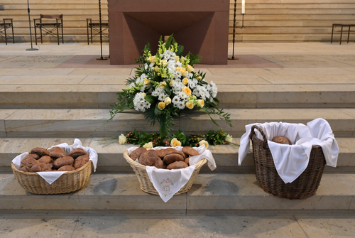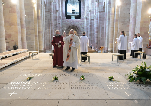 Am Ende des Gottesdienstes wurden die Kaisergräber gesegnet und mit Blumen geschmückt und die Brote gesegnet, die in der Nachfolge des Gebots von Kaiser Heinrich V. zur Armenspeisung an die Gottesdienstbesucher verteilt wurden. Seit dem letzten Jahr werden die Kaisergräber von oben, im Kirchenraum gesegnet, statt in einer Prozession zur Krypta. So können die Gottesdienstbesucher unmittelbar die Segnung verfolgen.