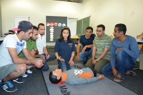 Die Malteser unterstützen hier deutschlandweit in verschiedenen Bereichen. Seit vergangenem Jahr bieten sie auch für Anwärter auf den Führerschein einen Erste-Hilfe-Kurs in arabischer Sprache an. „Natürlich sind die Menschen gefordert, Deutsch zu lernen, sonst ist eine Integration schwer bis unmöglich“, sagt Ausbildungsleiter Heinz-Peter Sauer. „Doch Notfälle passieren immer und dann sollte jeder wissen, was zu tun ist“, ist Sauer überzeugt.