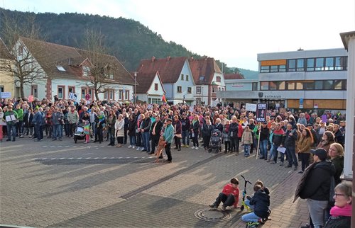 Die Schlussansprache an die rund 500 Personen, die sich auf dem Rathausplatz versammelt hatten, übernahm Hauensteins Ortsbürgermeister Michael Zimmermann „als Vertreter der Kommune“. Die Veranstaltung sei überfraktionell organisiert worden, betonte er. „Geht wählen, eine demokratische Partei“, rief auch er auf. „Extreme gehen immer wählen.“