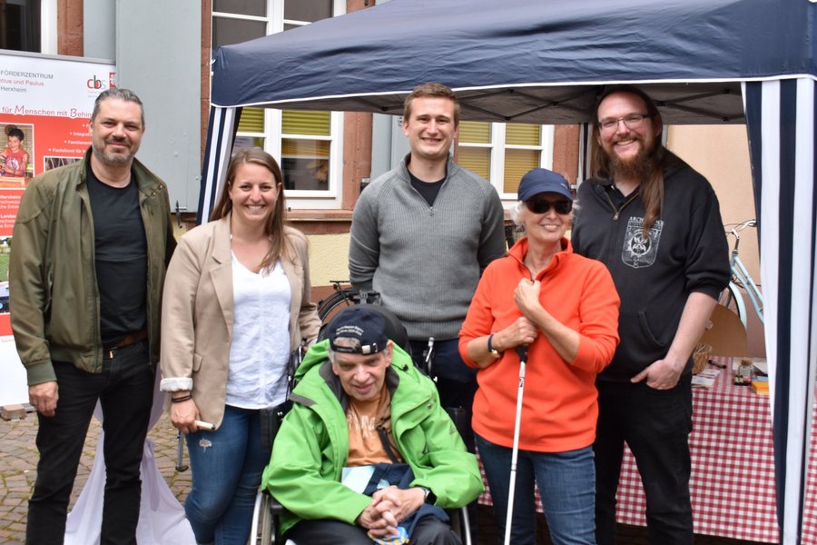 Auf dem Platz neben der Kirche erwartete die Besucher*innen Infostände des Behindertenbeirats der Stadt Landau und des Clubs Behinderter und ihrer Freunde Südpfalz e. V. (cbf Südpfalz e.V.). Für ein besonderes Andenken an den Tag sorgte der Aktionsstand des Caritas-Förderzentrums St. Laurentius und Paulus: Mit Hilfe einer Fotobox konnten die Besucher*innen ein Foto von sich machen und das direkt mitnehmen.